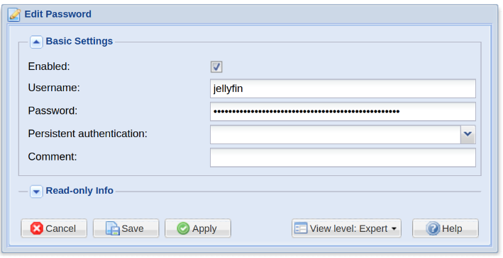 Create a user for Jellyfin: